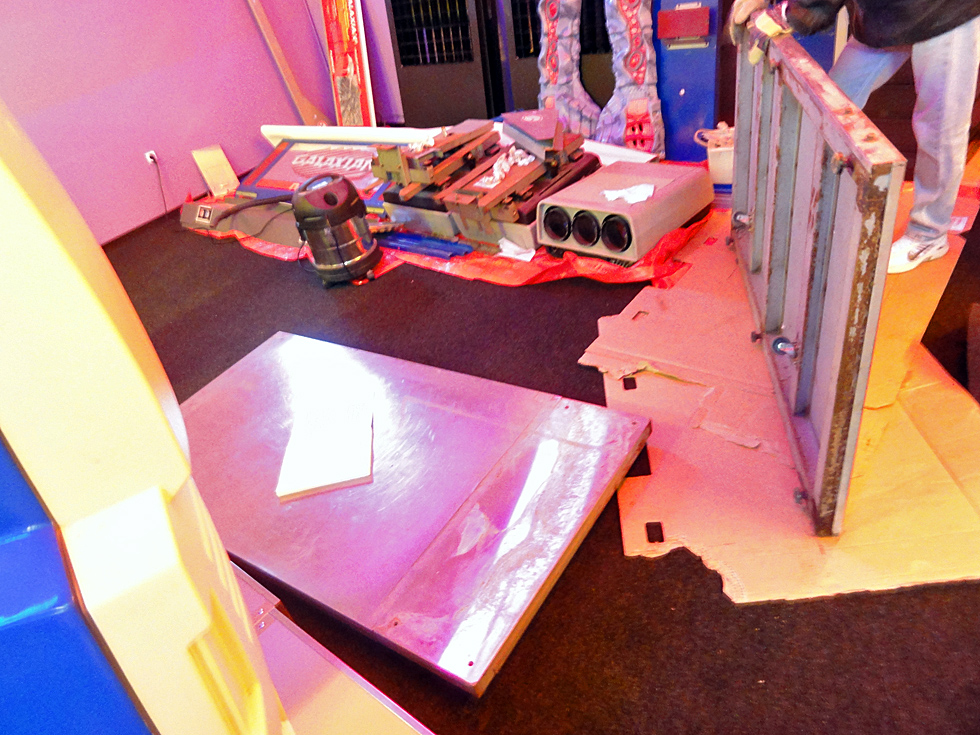 This 'tunnel' will lead power/video/sound wires from the control box (the one in the middle) to the front of the theater. Here's part after removing all that dust coming form mars!  :arrow: