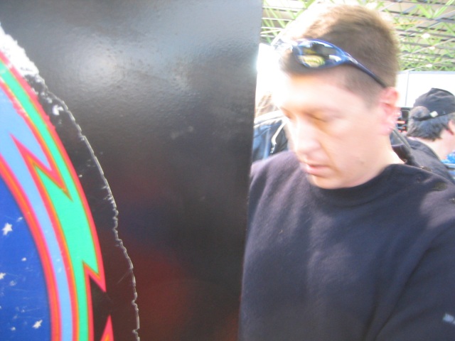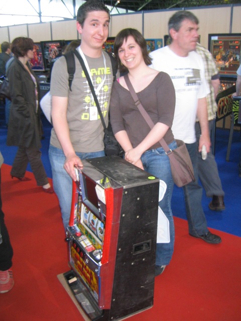 Back on the parking, James & Aspic loading their latest toys bought on the show during the week end : pachislots & babyfoot