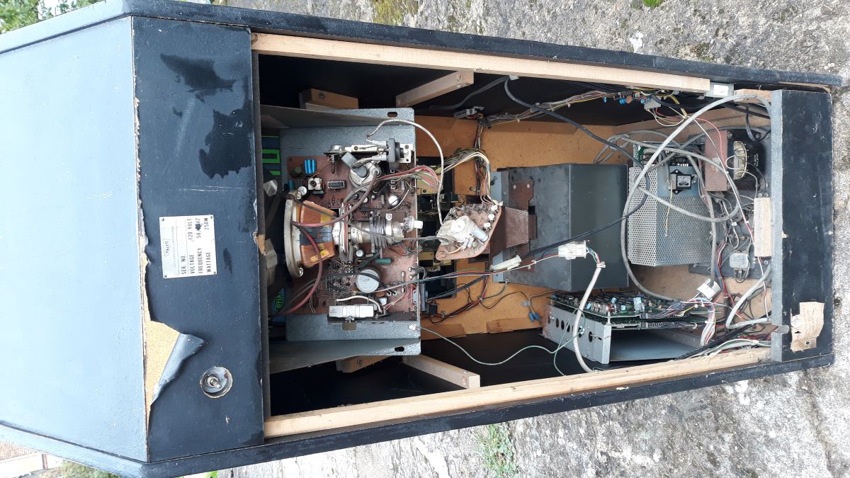 She’s in rough shape: at first glance, the back door is missing, the monitor tube is broken, the base has water damage, and the original control panel is gone… Honestly, that’s fine by me, definitely a lot of work ahead, but also plenty of arguments for not paying too much in the end... and I’m not about to get picky when it comes to a cabinet this rare!
