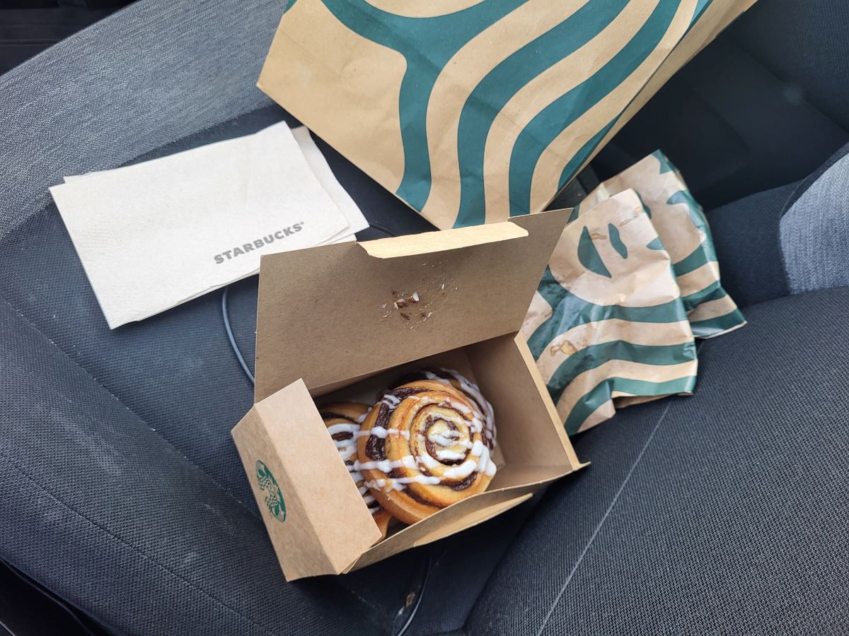 Funny how wolfing down a cake in the car instantly reminds me of someone