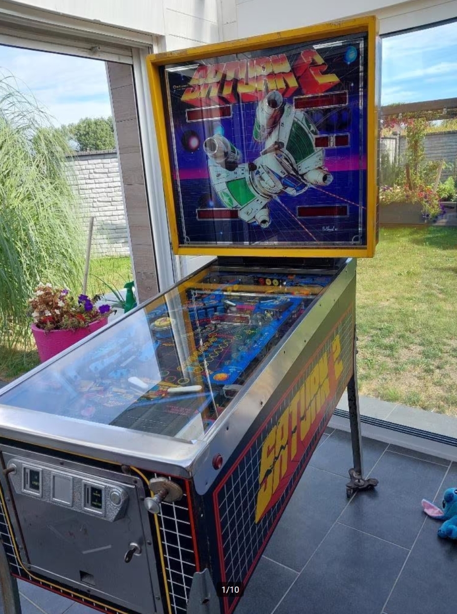 )… and anyway this “Saturn 2” pinball isn’t officially tied to the movie at all, despite the big close‑up of the GUNSTAR on the backglass…