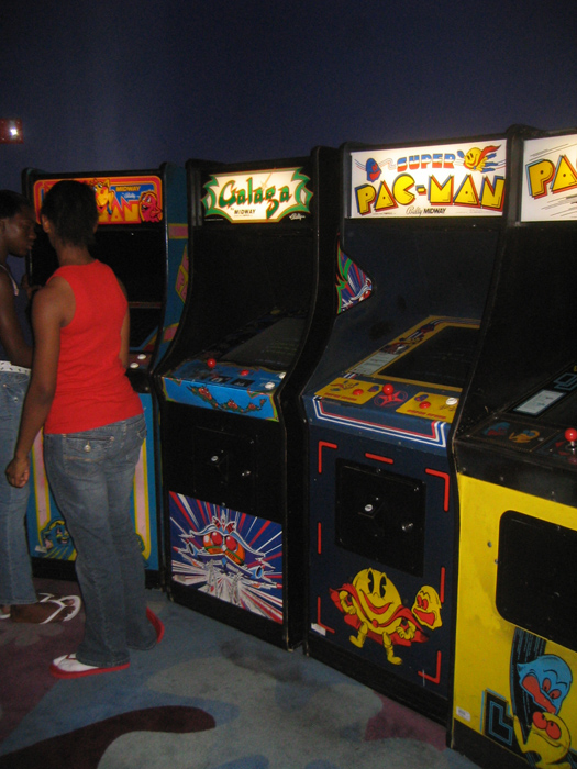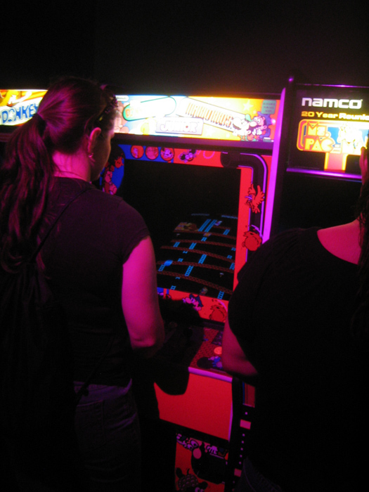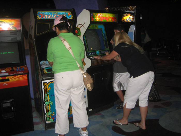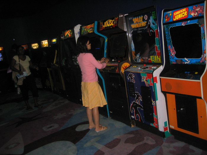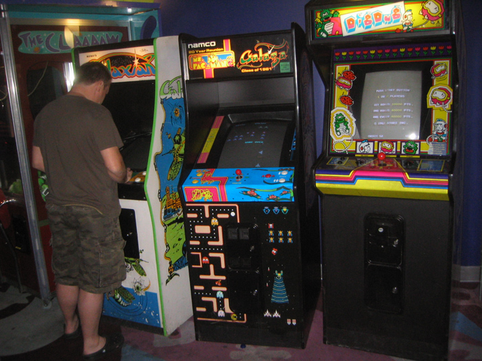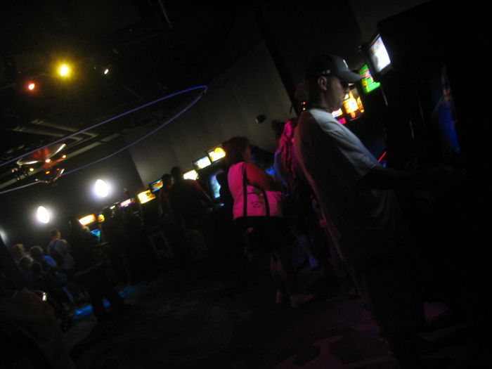 They have another level with 90's games. They had a NICE 2 player cab of Capcom's The Punisher and I watched two kids kick some major ass, really took me back to the days when EVERY arcade in Disney had Ninja Turtles and that's ALL I would do. "Wanna go on Splash Mountain Nick?" "No...Turtles...." "Wanna take a picture with Mickey?" "NO! We're almost up to Shredder!!" Also, on the top floor is the food court and they have some newer cocktail table games so you can get a bite to eat and even play some Galaga too. It was cool to sit down with some chicken fingers and play Mrs. Pac-Man.
