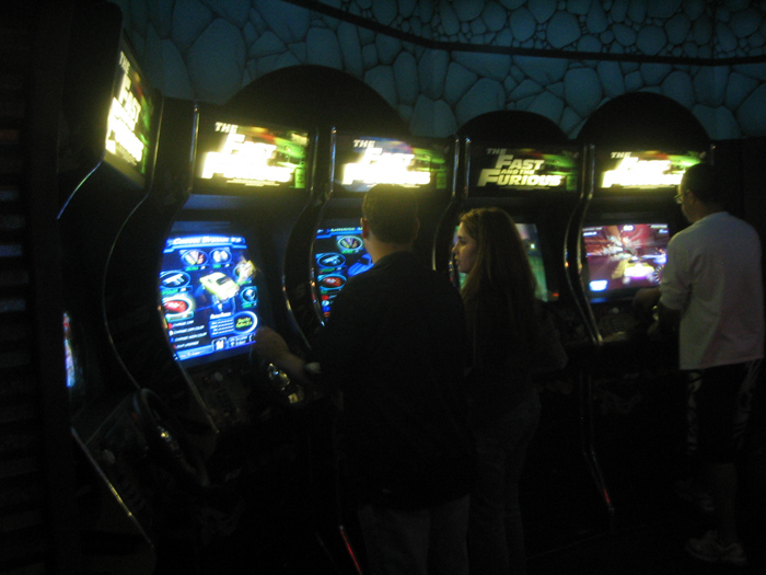 With newer games, I can see they have the new Nascar game...woopty shit. Another racing game that can't hold a candle to Daytona. Last time I was there they had a room filled with those ugly Tsumo full motion cabs that people would hog and you could never play, a few Sega and Namco Light Gun games and they had some stand up versions of The Fast and the Furious. Another room they had fighting games. Mostly Tekken and Soul Caliber 2. They just got the new Tekken 5 machines and only one of the four joysticks worked correctly. Another room after that they had a couple of music game, Percussion Masters and DDR and I think Pump it Up and they made the pinball room smaller. It's sad because the first time I went the Pinball area was huge and they had an awesome selection of games. They even had two NBA Fastbreak games linked together for two player mode. I played against this other girl and she kicked my ass and her parents even ran in and started to taunt me because I got beat by a girl. (should have gotten some digits, she was pretty cute too)  oppps
