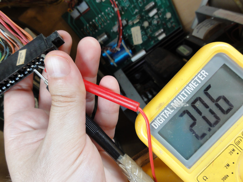 OK, the basic check. Let's plug the game. On this pin, I'm supposed to have 12V ...